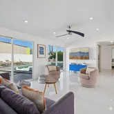 Step inside to sleek, modern design blended with rich textures and nods to the home's original mid-century roots, now refreshed with all-new amenities for today's lifestyle. The chef's kitchen is a showstopper, featuring high-end stainless steel appliances, a spacious eat-at island/bar, and an open flow into the great room--ideal for entertaining. Each bedroom is stylishly designed and filled with natural light, creating warm and inviting spaces throughout the home. The expansive primary suite is a true retreat, featuring direct access to the pool, a sleek wall-mounted fireplace for a cozy ambiance, and a show-stopping en-suite bath. The bathroom is finished with modern, high-end details, including a seamless walk-in shower with floor-to-ceiling tile, penny round tile floor, a wall-mounted toilet, and polished chrome fixtures--delivering both luxury and sophistication. With peak season rental rates around $450 per night, this property isn't just a home, it's a lucrative investment opportunity and a dream vacation destination all in one. Whether you're looking for a high-performing short-term rental, a desert getaway, or a stylish year-round residence, this Palm Springs stunner checks every box!