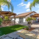 Welcome Home to this Beautiful Single Story Home on a Corner Lot! Beautiful Hardwood Floors,Vaulted Ceilings, Separate Living Room, Dining Room! Space! Wet Bar Area! Open Floor plan! Beautiful White Cabinets, Kitchen opens in to Family Room with Cozy Fire place! Nice Size Bedrooms with Mirror Closet Doors, Shutters throughout the home! Gorgeous Bathrooms both with dual sinks, beautiful flooring! Master Bedroom Suite has Vaulted Ceilings Sliding Glass Door leading to backyard! Master Bathroom offers...Welcome Home to this Beautiful Single Story Home on a Corner Lot! Beautiful Hardwood Floors,Vaulted Ceilings, Separate Living Room, Dining Room! Space! Wet Bar Area! Open Floor plan! Beautiful White Cabinets, Kitchen opens in to Family Room with Cozy Fire place! Nice Size Bedrooms with Mirror Closet Doors, Shutters throughout the home! Gorgeous Bathrooms both with dual sinks, beautiful flooring! Master Bedroom Suite has Vaulted Ceilings Sliding Glass Door leading to backyard! Master Bathroom offers dual sinks, jacuzzi tub and spacious walk in closet! A Must See! Back yard has built in BBQ, sinks, Several Seating areas, Ceiling Fans, Turf and a Side Yard for your RV, Boat, Toys, or additional parking! Home is a Must See! Landscaping features Palm Trees Palm Trees and & more Palm Trees! Fountain is tranquil!