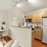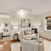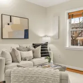 As you enter the mid-rise brownstone building, renovated in 2009 by Broadway Street LLC, you'll note the careful attention to detail in maintaining a quaint well kept community. Ascend just one floor up to your quiet unit just at the top of the stairs - an easy journey with your groceries yet far enough to separate your from the street level below. As you enter the unit through the formal foyer you'll note the hardwood floors and freshly painted (head to toe!) walls throughout. What you won't notice, but should be a point by which to be impressed, is the just added HVAC - a HUGE expense now hopefully defrayed for many years to come! The main living and dining area packs a whole lot of practical use into a perfectly symmetrical space - creating a "little condo that could" atmosphere where the stated square footage is certainly not reflective of how this one lives.