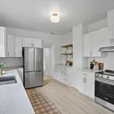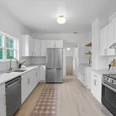 - Appliances: Free-Standing Range, Dishwasher, Refrigerator, Disposal, Hard Surface Counters