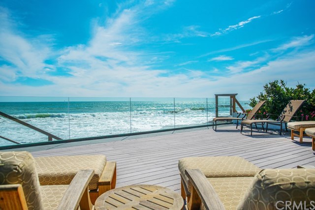 Savor the rewards of a preferred oceanfront lifestyle in this grand, versatile and captivating home behind the guarded gates of Capistrano Beach’s highly coveted Beach Road neighborhood. Unobstructed views of the ocean, beach and graceful dolphins provide an unmatched setting for harmonious beach living. Your home offers one of the largest maintenance free Trex-finished decks on the sand with a BBQ, retractable awning, shower and direct beach access. Ownership of the private beach is included and...Savor the rewards of a preferred oceanfront lifestyle in this grand, versatile and captivating home behind the guarded gates of Capistrano Beach’s highly coveted Beach Road neighborhood. Unobstructed views of the ocean, beach and graceful dolphins provide an unmatched setting for harmonious beach living. Your home offers one of the largest maintenance free Trex-finished decks on the sand with a BBQ, retractable awning, shower and direct beach access. Ownership of the private beach is included and extremely rare in California. Encompassing approx. 3,908 s.f., this 3-bdrm, 3-bath floorplan can be expanded with current approved City of Dana Point plans to include up to 5 bedrooms and 4 baths, a modern open kitchen with LaCantina type folding doors to the beach side of this amazing coastal home creating the quintessential 4200 sq ft indoor/outdoor lifestyle. Ascend a spiral staircase or take an automatic lift to the upper level, where a stunning great room is accentuated by a dramatic open-beam wood ceiling with enormous skylight. Entertaining and relaxed daily living are a delight thanks to a sun room, dining room with built-in seating, a wet bar, fireplace, extensive custom built-ins throughout, and a contemporary kitchen with granite countertops, walk-in pantry, double oven and built-in Sub-Zero refrigerator. On par with luxe resorts, your master suite offers a 2nd over-sized ocean-view deck, 2 walk-in closets, wood floors, a sitting area with fireplace, and a remodeled bath.