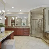 - Bathroom: Double Sinks, Marble, Pass Through, Primary - Stall Shower(s), Primary - Sunken Tub, Stall Shower - 2+, Tile