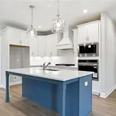 - Kitchen Features: Cabinets White, Kitchen Island, Pantry Walk-In, Stone Counters