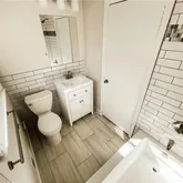 walls with new vanities, faucets and toilets. New exterior paint coming