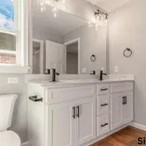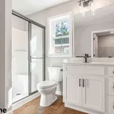 - Room Features: Countertop(s) - Solid Surface, Double Sink, Lighting - Recessed, Lighting - Wall sconces, Bathroom - Stall Shower, Flooring - Luxury Vinyl Plank