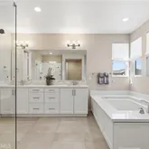 - Room Bathroom Features: Soaking Tub, Quartz Counters, Shower in Tub, Exhaust fan(s), Walk-in shower, Main Floor Full Bath, Linen Closet/Storage, Separate tub and shower, Double sinks in bath(s), Dual shower heads (or Multiple), Privacy toilet door, Bathtub, Double Sinks in Primary Bath, Shower