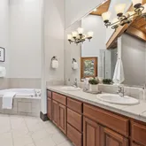 - Bathroom: Double Sinks, Dual Flush Toilet, Half on Ground Floor, Primary - Stall Shower(s), Primary - Sunken Tub