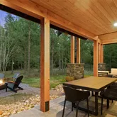 - Exterior: Stone, Wood
