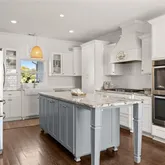 - Kitchen Features: Kitchen Island, Cabinets White, Stone Counters, View to Family Room