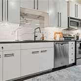 - Appliances: Dishwasher, Disposal, Dryer, Exhaust Fan, Microwave, Refrigerator, Electric Range, Stainless Steel Appliance(s), Washer