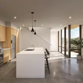 The home’s exquisite finishes blend natural materials and luxury living, including polished concrete floors, quartz countertops, wood flooring, Andersen windows, Bosch appliances and standing seam metal roof. ICON builds high-performance, durable homes using robotic technology and proprietary cementitious-based material. Designed and engineered for precision, speed and resiliency, the innovative technology delivers homes with higher levels of insulation that decreases the home’s temperature fluctuations in the summer and winter, and the wall systems are designed to resist water, mold, termites and fire. Conventional construction methods for second story, roofs, windows and doors with elevated finishes are then used to complete the homes.