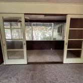 bathroom includes a low-threshold shower for ease of entry. An enclosed patio-style bonus area provides additional usable space, and a detached covered patio offers a sheltered outdoor area. The backyard is smaller-scale but private, with no immediate rear neighbor. A detached garage can accommodate one standard-sized vehicle or two small vehicles in tandem configuration. The property is being sold As-Is and remains in its original condition, presenting an opportunity for a new owner to undertake renovations, updates, and improvements.
