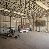1800 square foot detached workshop with electric and two rolling doors.