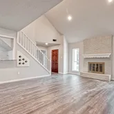 Step into this beautifully remodeled French Chateau — blending timeless charm with modern updates. Remodeled just two years ago, the home offers soaring vaulted ceilings and abundant natural light. Fully redone down to the studs with new sheetrock, PEX plumbing, and updated electrical, it's move-in ready. High-end vinyl plank flooring graces the first floor, while plush carpet warms the bedrooms. The open-concept kitchen features new cabinetry, quartz countertops, and flows into the spacious living area — perfect for family gatherings. The master bath is a spa-like retreat with a custom-built oversized shower. Entertain guests at the cozy bar or relax on the balcony overlooking the family room. French doors lead to a peaceful outdoor space — ideal for morning coffee or evening sunsets. This is a home built for making memories.