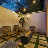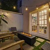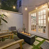 French doors open to two private patios — an exceptionally rare feature — providing abundant outdoor living space. Whether entertaining friends, playing with pets, enjoying morning coffee, gardening, or creating your own private retreat, these expansive patios offer remarkable versatility and privacy.