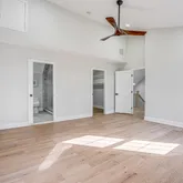 The main-level primary suite is the kind of feature buyers dream about: private patio access, custom walk-in closet, and a spa-level bath with soaking tub, oversized shower, and dual vanities. It feels like a boutique hotel, but it’s yours—every day. A private office (or bedroom) with full bath on the main level adds flexibility for guests, multigenerational living, or a serious work-from-home setup.