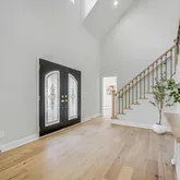 From the moment you walk into the soaring two-story foyer, you feel it: scale, light, and intention. Wide-plank luxury hardwoods run wall to wall, setting the tone for a home that blends classic architecture with bold, modern finishes.