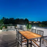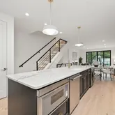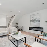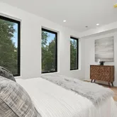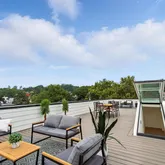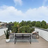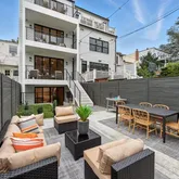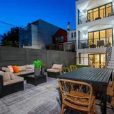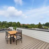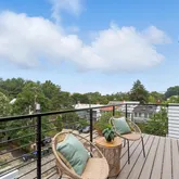The home’s highlight awaits at the very top: a spacious rooftop deck with sweeping neighborhood and parklike views, accessed via a full glass skylight/easy-to-open roof hatch. Additional features include outdoor decks on every floor, recessed lighting throughout—including along the staircase—and elevator-ready closets for future convenience.