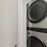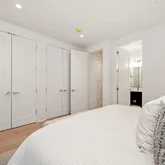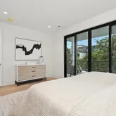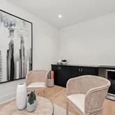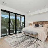 The two upper levels offer four additional bedrooms, each with its own en-suite bath and ample closet space. The primary suite has a private balcony, accommodates a king-size bed and a walk-in closet. The spa-inspired primary bath features a luxurious soaking tub, dual vanities, heated floors and a private water closet. A laundry closet is conveniently located on the first upper level. On the second upper level, a versatile flex room with a wine bar—equipped with an ice maker and beverage cooler—provides an ideal space for hosting.
