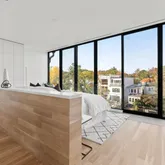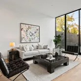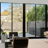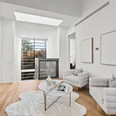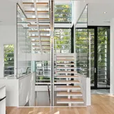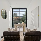 *Main Living Space: Step inside to an expansive, light-filled interior where the chef’s kitchen steals the show. This space blends indoor and outdoor elements with custom cabinetry, top-of-the-line Miele stainless steel appliances, and floor-to-ceiling glass walls. The Acadia Glass System with privacy fins invites ample sunlight while maintaining a private atmosphere—a true sanctuary for culinary creativity and social gatherings. *Seamless Entertaining Areas: The open, flowing layout connects the kitchen, dining, and living spaces, offering a sophisticated setting for hosting or unwinding. Step out to a private slate patio, a tranquil outdoor retreat perfect for morning coffee or evening relaxation. *Artful Staircase & Luxurious Upper Levels: A visually captivating floating staircase commands the eye and leads to the upper levels, where the primary suite awaits. This retreat offers a custom walk-in closet and a spa-like en suite bath with a glass waterfall shower and soaking tub designed for ultimate relaxation. Two additional bedroom suites offer versatility, privacy, and elegant finishes, ideal for children, guests, or a home office.