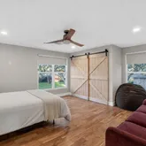 The 2,500 SF two-story guest residence includes a full living and kitchen setup on each level, ideal for multigenerational living, guests, or workspace along with 4 bedrooms and 3 full bathrooms.