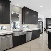 A true gourmet kitchen features professional-grade 48" Wolf range, refrigerator, quartz countertops, 2 dishwashers and large island plumbed for a secondary prep sink. A fully equipped walk-in pantry includes a second Sub-Zero refrigerator, additional oven, and warming drawer. A spacious living area with cozy fireplace flows seamlessly into surrounding living spaces. Each bedroom has an ensuite bath. A primary suite offers its own fireplace, 2 large closets and a spa-like bath. Enjoy the convenience of 3 laundry rooms--one upstairs, one in the primary bedroom in main house as well as one in the guest home.