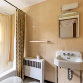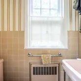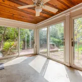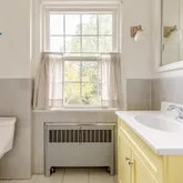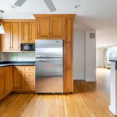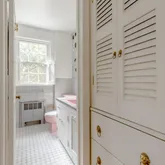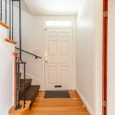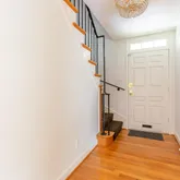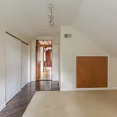 First floor: Versatile for entertaining and relaxing. The main floor is a comfortable open floor plan - kitchen, dining and living room feel light and spacious and can open up with 2 sets of French doors to the brick terrace and backyard through the practical, 4 season porch. Large private fenced backyard with mature plantings, a vegetable garden and a garden house. Quality classic kitchen and cabinetry, oak floors, working fireplace with English brass fireplace tools and fender. Second floor: Three generously-sized bedrooms , two baths, built-ins for linens and master closet. Master bedroom opens to the sundeck. Pick fresh figs from the tree near the bedroom! Third floor: Cozy "penthouse" bedroom is paneled in cherry wood. Full bath, large closet room, studio and ample storage space. There is also a whole house fan that naturally cools the house on warm days. This level has its own dedicated HVAC zone. Basement: Utility spaces and storage closets. Also a large carpeted bedroom or playroom. Full bath and laundry area. Garage with electric garage door opener and driveway. Available October 1. The house is empty and can be shown now but renovations are wrapping up - painting, new tile floor in bathroom, new lighting fixtures, refinished flooring, etc.