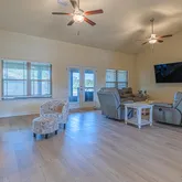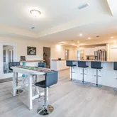 - Interior: Ceiling TrayCofferd, Floor Vinyl, Kitchen Island, WasherDryer Hookup