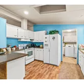 - Kitchen Room Additional Features: Free Standing Range, Free Standing Refrigerator, Laminate Flooring, Peninsula