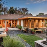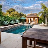 Ready to Move Right Into! One among its many prominent features is the kitchen, which would speak to Julia Child. The current owners have carefully, enlarged and updated it with magnificent wood cabinetry, granite counters, and top-of-the-line stainless appliances. A wall of French doors opens to the first of three garden rooms, made for California living and exciting entertaining. The pool area with its newer saltwater pool and cascade feature, is made very dramatic with its smashing outdoor kitchen and bar, and very distinctive, architecturally designed pool house. It comfortably accommodates overnight guests, complete with bath. A Must See!
