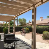 Leased Dec 2025 thru April or 2026A lovely highly upgraded San Carlos model with living room family room convertible office/den and 2 bedrooms and 2 baths. Kitchen has slab granite, as do the bathroom surfaces. Tile throughout except 2 bedroom. Lovely backyard with extended patio. Perfect for the discerning snowbirds.