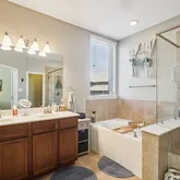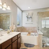 - Interior Features: Breakfast Bar, Double Vanity, High Ceilings, Kitchen Island, Kitchen Family Room Combo, Soaking Tub, Separate Shower, Tub Shower, Walk In Pantry, Window Treatments, Ceiling Fans, Programmable Thermostat