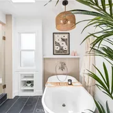 - Room Bathroom Features: Upgraded, Soaking Tub, Quartz Counters, Exhaust fan(s), Walk-in shower, Main Floor Full Bath, Separate tub and shower, Double sinks in bath(s), Dual shower heads (or Multiple), Bathtub, Remodeled, Shower