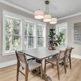 Step inside this better-than-new, custom-built home and you'll immediately feel its thoughtful craftsmanship and intentional design. Enter through a welcoming front porch and double glass doors into a light-filled foyer that leads to an open-concept kitchen, dining, and living area that's perfect for gatherings large and small. The dining room at the front of the home features vaulted ceilings and currently serves as a beautiful home office. A chef's kitchen boasts custom cabinetry to the ceiling, stainless appliances, a gas range, quartzite countertops, and an extra-large pantry for all your entertaining essentials.