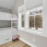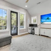 Enjoy year-round Lowcountry living on the screened-in back porch, spacious enough for al fresco dining or game day lounging. Upstairs, find three additional bedrooms with two full baths and a large gathering room with a wet bar, perfect for family or guests to unwind. One of the bedrooms features a private en-suite bath. A dedicated bunk room includes built-in beds, shelves, and charging stations for added convenience. Step outside to the balcony overlooking the backyard, where clear nights reveal starry skies and last year even a rare glimpse of the Northern Lights.