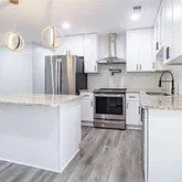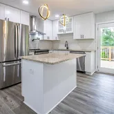 - Kitchen Features: Cabinets White, Kitchen Island, Stone Counters