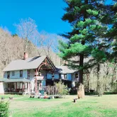 The existing structures were once part of the 1878 Tremper House of Phoenicia, a grand hotel that overlooked the town and the surrounding Catskill Mountains. Later renamed the Washington Inn, it was known for its luxurious accommodations before being largely destroyed by fire in 1908. Remaining original structures include what were once the carriage house, horse stalls, two-lane bowling alley, chapel, private cottages, and parts of the original hotel. Notable historic features like the music gazebo and water fountain still exist and await restoration. Highlights -