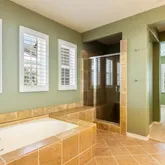 - Room Bathroom Features: Shower in Tub, Bathtub, Main Floor Full Bath, Separate tub and shower, Exhaust fan(s), Double Sinks in Primary Bath, Tile Counters