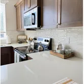 - Kitchen Appliances: Dishwasher, Disposal, ENERGYSTARQualified Appliances, Free Standing Range, Free Standing Refrigerator, Microwave, Pantry, Quartz, Solid Surface Countertop, Stainless Steel Appliance, Tile