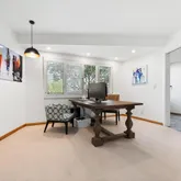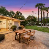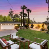 Located in the lower Hastings Ranch area, this extra-large, 13,000 sq. ft. lot holds an elegant 4-bed, 2.5 bath Mid-Century home with a 373 sq feet detached studio and finished and insulated two-car garage with a charging station, a separate finished outbuilding, and an extra-wide, gated driveway with parking for 4 cars. The backyard patio features stone pavers leading through the fully - landscaped yard with room for a pool and outdoor seating to enjoy the unobstructed mountain views. This ready...Located in the lower Hastings Ranch area, this extra-large, 13,000 sq. ft. lot holds an elegant 4-bed, 2.5 bath Mid-Century home with a 373 sq feet detached studio and finished and insulated two-car garage with a charging station, a separate finished outbuilding, and an extra-wide, gated driveway with parking for 4 cars. The backyard patio features stone pavers leading through the fully - landscaped yard with room for a pool and outdoor seating to enjoy the unobstructed mountain views. This ready to move-in home owned by a single owner offers many high-end extras: In addition to its polished wood floors and French doors, double-paned windows and window dressings, you'll find artful light fixtures, a wine refrigeration unit, abundant closet space and custom built-ins. Two of the remodeled baths are oversized: one with a shower and soaking tub and the other featuring an extra-wide roll-in shower. A central open floorplan takes you from the living room through the dining room to a large family room with a view of the private backyard. The front hallway leads to two bedrooms and the master ensuite, which wraps around two sides and opens to the back patio. The modern kitchen lies off the dining room with its gleaming quartz stone counters and matching floor tiles, and beyond that is a half bath and the fourth bedroom. A separate finished 17' x 18' temperature-controlled building lies just a few feet across the patio with room for your hobbies, music, a gym or a separate rec room. This home comes with dual A/C systems and is within walking distance of two, large retail centers with a Whole Foods, Trader Joe's, and many convenient dining and shopping options. Living here, you'll enjoy comfort, style and all the conveniences this area has to offer.