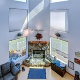 - Interior Features: Attic Fan, Cathedral Ceiling(s), Ceiling Fan(s), Eating Space In Kitchen, High Ceilings, Kitchen/Family Room Combo, Open Floorplan, PrimaryBedroom Upstairs, Solid Surface Counters, Solid Wood Cabinets, Split Bedroom, Stone Counters, Thermostat, Vaulted Ceiling(s), Walk-In Closet(s), Window Treatments