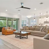 impact, 3-panel sliding doors that bring the outdoors in. EXTRA-LARGE LOT, perfect for a future pool while still maintaining a generous yard. Extended long and wide driveway, ideal for guest parking. No flood zone! No flood insurance required. Don’t miss this rare opportunity to