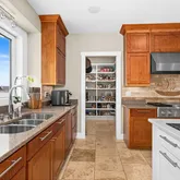 - RoomDescription: Custom cabinets, granite and quartz counters, top-of-the-line appliances and a large pantry!