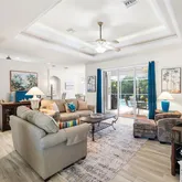 - Interior Features: Cathedral Ceiling(s), Ceiling Fan(s), Coffered Ceiling(s), Crown Molding, Eating Space In Kitchen, High Ceilings, Primary Bedroom Main Floor, Solid Wood Cabinets, Split Bedroom, Stone Counters, Thermostat, Vaulted Ceiling(s), Walk-In Closet(s), Window Treatments
