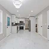 - Kitchen Features: Cabinets White, Stone Counters, View to Family Room