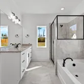 - Interior: Attic Expandable, Double Vanity, High Ceilings, Master On Main Level, Rear Stairs, Separate Shower, Soaking Tub, Split Bedroom Plan, Tile Bath, Tray Ceiling(s), Vaulted Ceiling(s), Walk-In Closet(s)