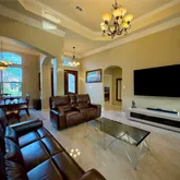 - Interior Features: Breakfast Bar, Crown Molding, Double Vanity, Entrance Foyer, High Ceilings, Kitchen Family Room Combo, Soaking Tub, Separate Shower, Tub Shower, Ceiling Fans