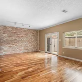 - Interior Features: Brick Walls, Balcony, Crown Molding, Entrance Foyer, Granite Counters, Window Treatments, Ceiling Fans, Kitchen/Dining Combo, Living/Dining Combo, Programmable Thermostat