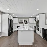 - Kitchen Features: Cabinets White, Kitchen Island, Pantry Walk-In, Stone Counters, View to Family Room
