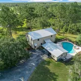 WINDOWS (2025), POOL PUMP (2024), HVAC (2023), METAL ROOF, EXTERIOR PAINT, and DRAIN FIELD (2019). Step inside the main cabin, where you’ll find FOUR EN-SUITE BEDROOMS, including a spacious primary suite with a LARGE WALK-IN CLOSET and UPDATED BATHROOM. Downstairs, nearly 1,600 SQFT is dedicated to gathering—featuring an open-concept living area, stone fireplace, and a kitchen connected to a REVERSE OSMOSIS SYSTEM for clean, purified water. Love cozy winter nights? The EXTERIOR-FED STEEL FIREWOOD BOX keeps your fireplace roaring—without the mess. For warmer days, relax on the 50-FOOT COVERED PORCH overlooking the pond or fire up the grill by the pool. Need more space? Just steps away, the AUXILIARY BUILDING offers a SECOND KITCHEN, FULL BATHROOM, and massive upstairs flex room—perfect for extra beds, guests, or a private retreat. The balcony view? Ideal for morning coffee or evening stargazing. Bring your horses—they’ll love the 5+ ACRES OF FENCED PASTURE, scenic trails, and shady oaks. Meanwhile, you can tend your garden next to the barn, which is SMARTLY FENCED TO DETER DEER that frequent the land. And here’s where the magic of this property really shines—income potential. You can use it as a wedding or event venue, a vacation rental for outdoor lovers and group retreats, a corporate or wellness getaway, or even revive its roots as a quail hunting lodge. The possibilities are as expansive as the land itself. This property is FENCED, CROSS-FENCED, and includes a FIRE LINE AROUND THE PERIMETER for added safety. Located just minutes from Lake City and with easy access to I-75, you’re only 45 minutes from Gainesville and less than 2 hours from Jacksonville Beach. So don’t walk—run—to see this rare and unforgettable opportunity for recreation, retreat, or revenue. Schedule your showing today!